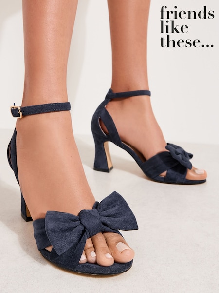 Friends Like These Navy Faux Suede Standard Fit Bow Detail Mid Block Heel Summer Sandals