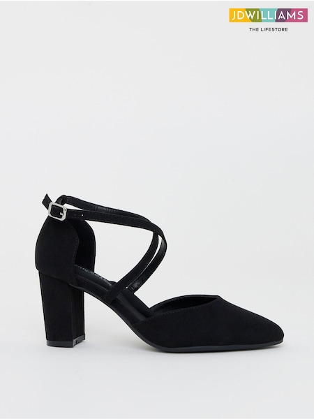 JD Williams Black Wide Fit Two Part Heels With Crossover Straps