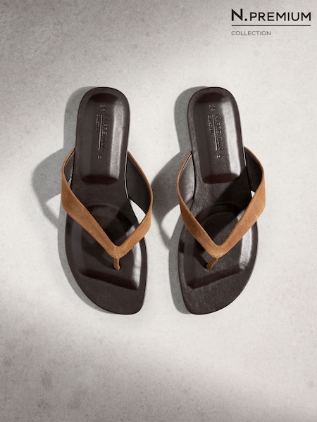 Tan Brown Suede Standard/Wide Fit Square Toe Thong Sandals