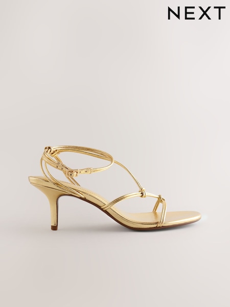 Gold Forever Comfort Leather Strappy Heeled Sandals