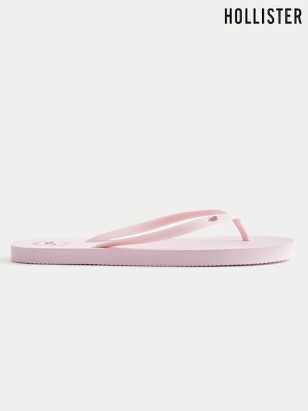 Hollister Pink Rubber Logo Flip Flops