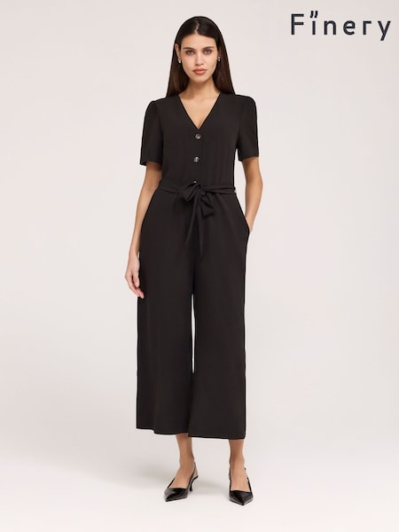 Finery Black Uma Crepe Short Sleeve Jumpsuit