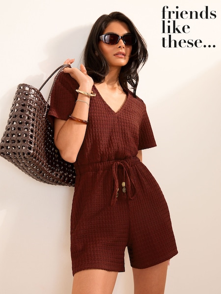 Friends Like These Rust Red Textured Bead Detail Playsuit