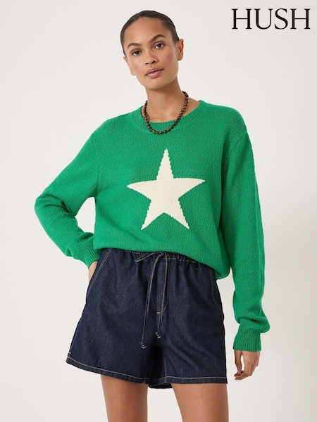 Hush Green Hallie Crew Neck Star Graphic Jumper