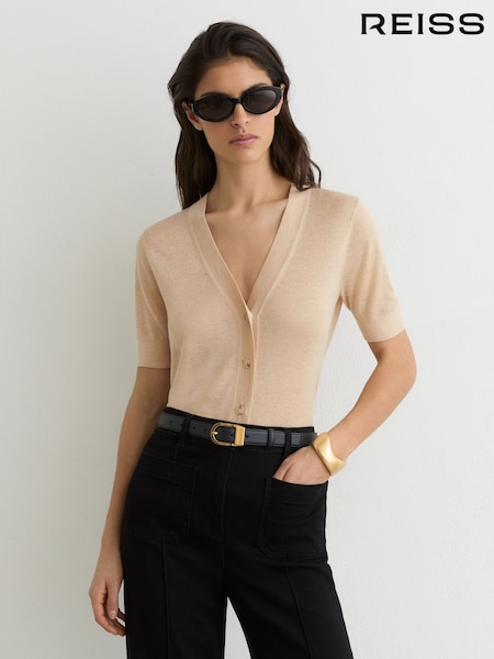 Reiss Neutral Mara Lightweight Cropped Cardigan