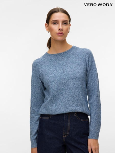 Vero Moda Stone Blue Round Neck Soft Touch Cosy Knitted Jumper
