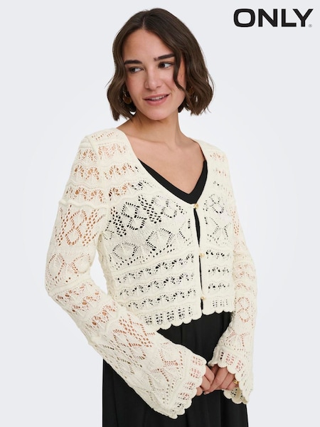 ONLY Cream Crochet Button Through Cardigan