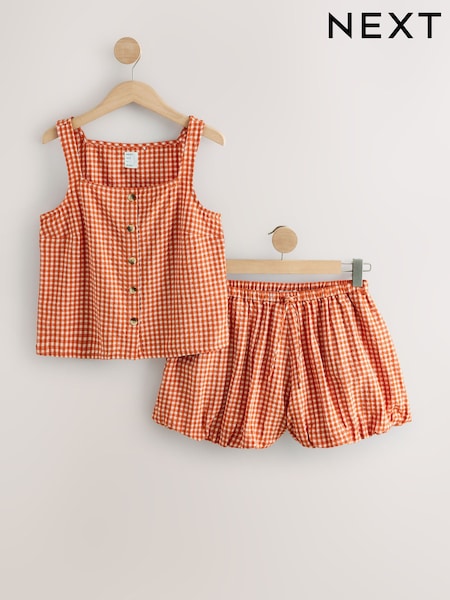 Orange Gingham Bloomer Short Pyjamas Set