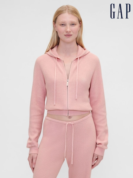 Gap X Summer Fridays Pink CashSoft Waffle Crop Hoodie