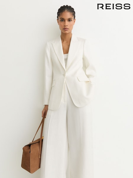 Reiss White Alyx Linen-Blend Single-Breasted Suit Jacket