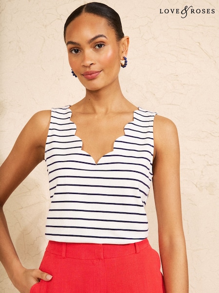 Love & Roses Ivory Stripe Scallop Scoop Neck Jersey Vest