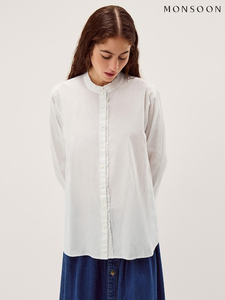 Monsoon White Paige Frill Poplin Shirt