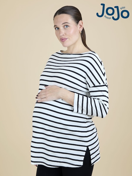 JoJo Maman Bébé Cream Stripe Tunic Maternity Top