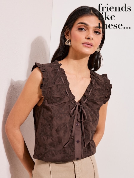 Friends Like These Chocolate Brown Broderie Textured Blouse