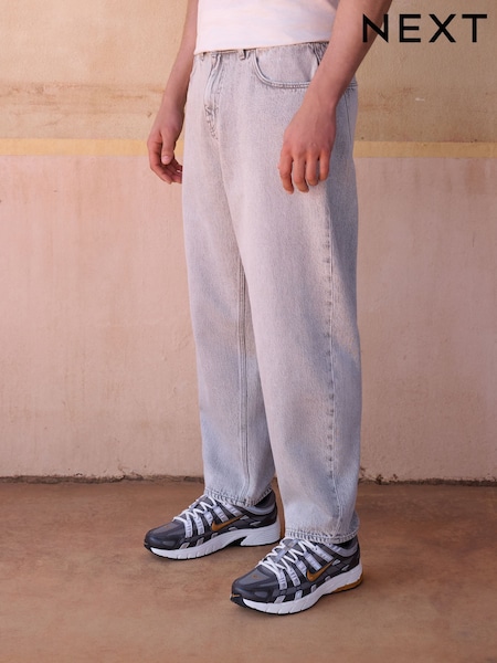 Light Grey Crosshatch Relaxed Fit Straight Fit Classic Stretch Jeans