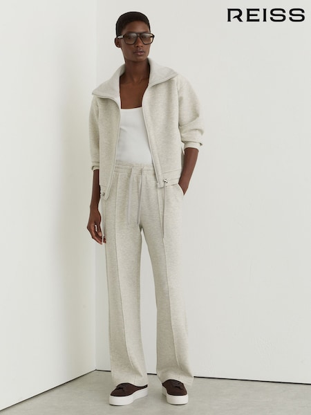 Reiss Grey Marl Jemma Premium Interlock Wide-Leg Joggers