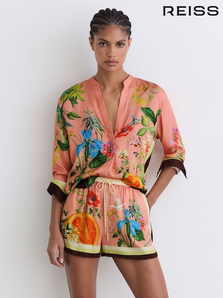 Reiss Pink Milos Tropical Scarf-Print Drawstring Shorts