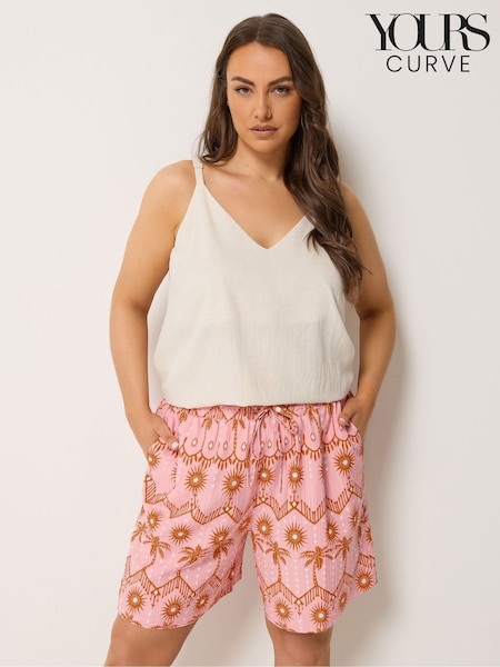 Yours Curve Pink Ditsy Floral Print Shirred Shorts