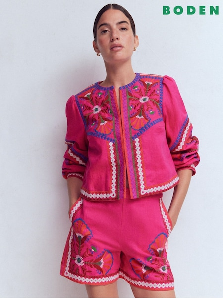 Boden Pink Embroidered Linen Shorts