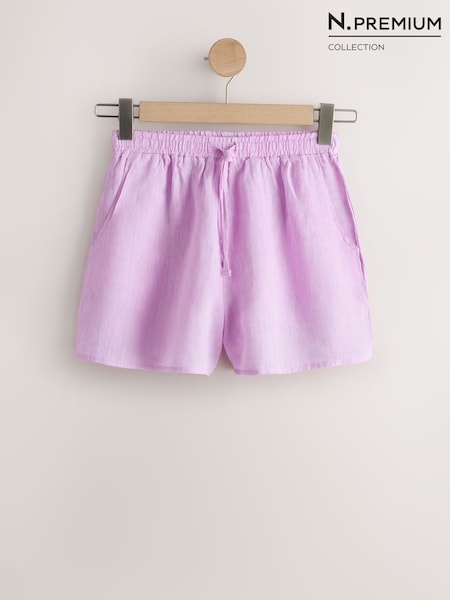 Pink 100% Linen Shorts